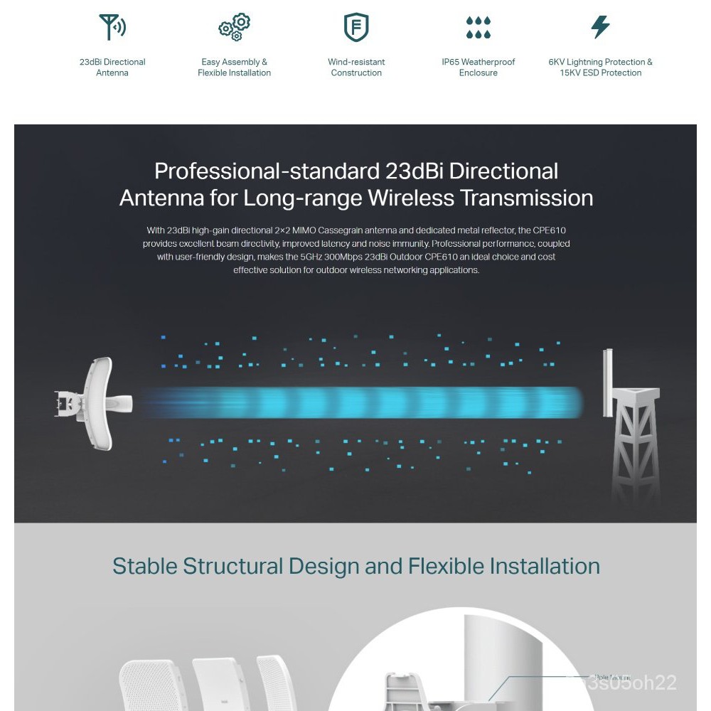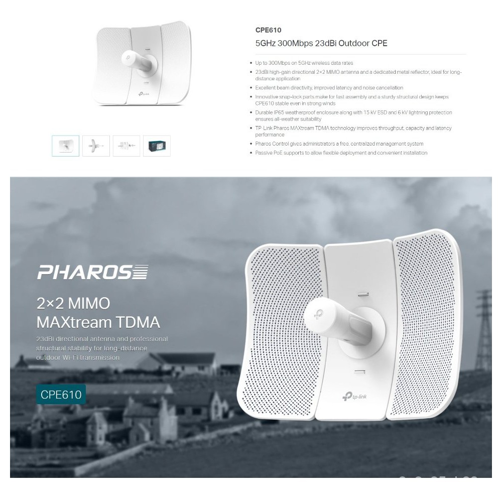 TP-LINK CPE610 (300MBPS) / CPE710 (867MBPS) 5GHZ 23DBI OUTDOOR CPE WITH 15 KV ESD & 6KV LIGHTNING PROTECTION AND IP65 WA