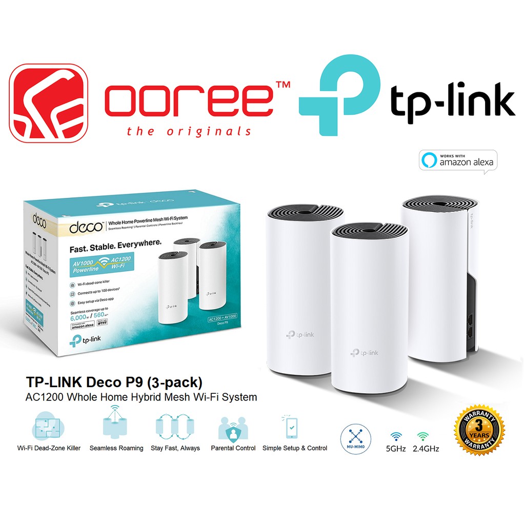 TP-LINK DECO P9 2-PACK / DECO P9 3-PACK AC1200 + HOMEPLUG AV1000 WHOLE HOME HYBRID MESH WI-FI SYSTEM WITH POWERLINE, SUP