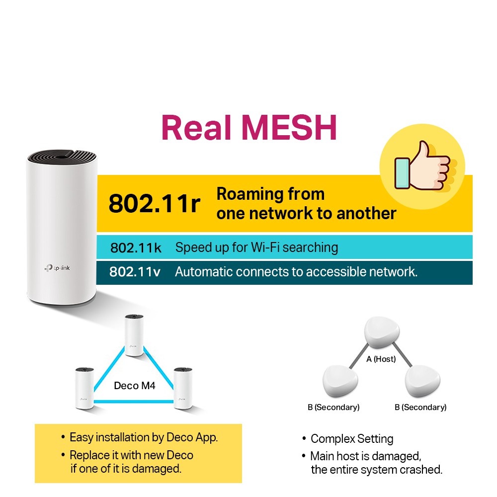 TP-LINK Deco M4 (2 Pack/3 Pack) AC1200 Gigabit Mesh WiFi Wireless Gigabit Wi-Fi Router System