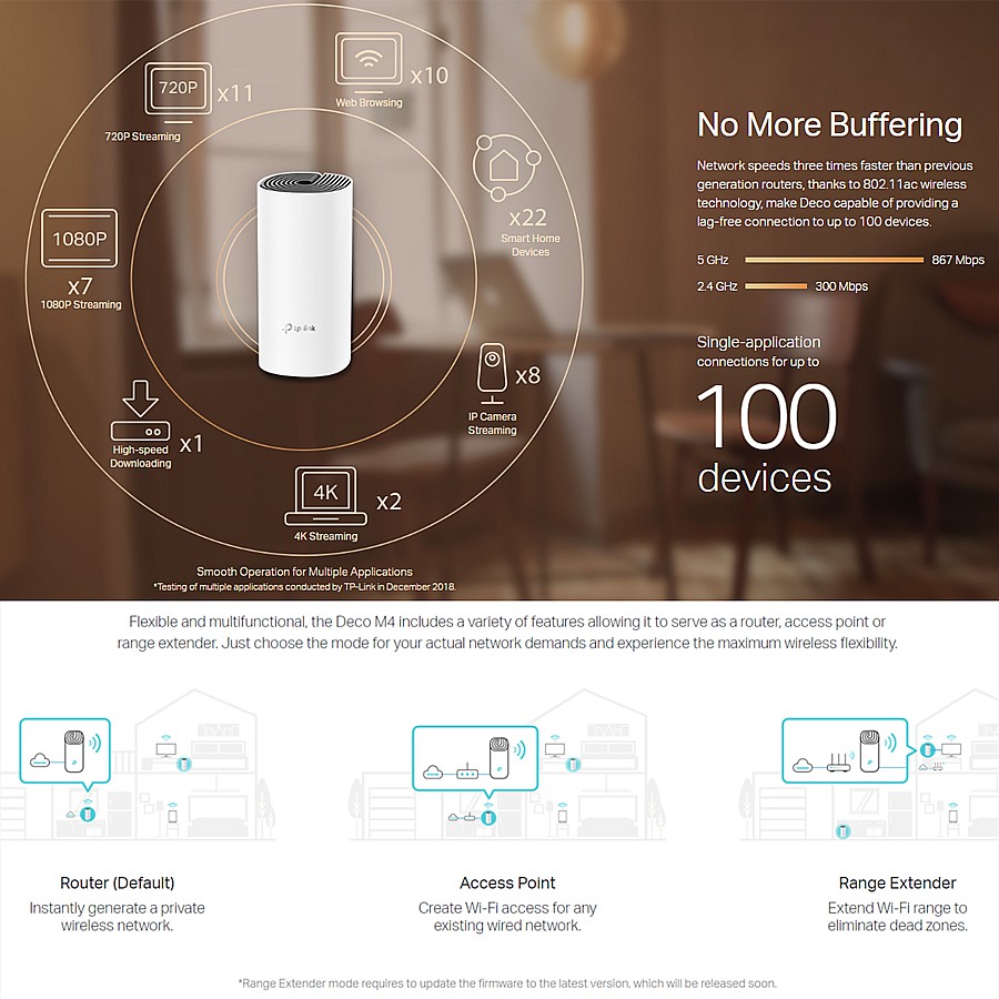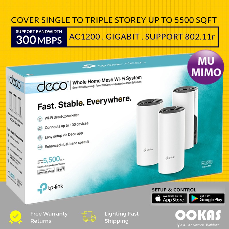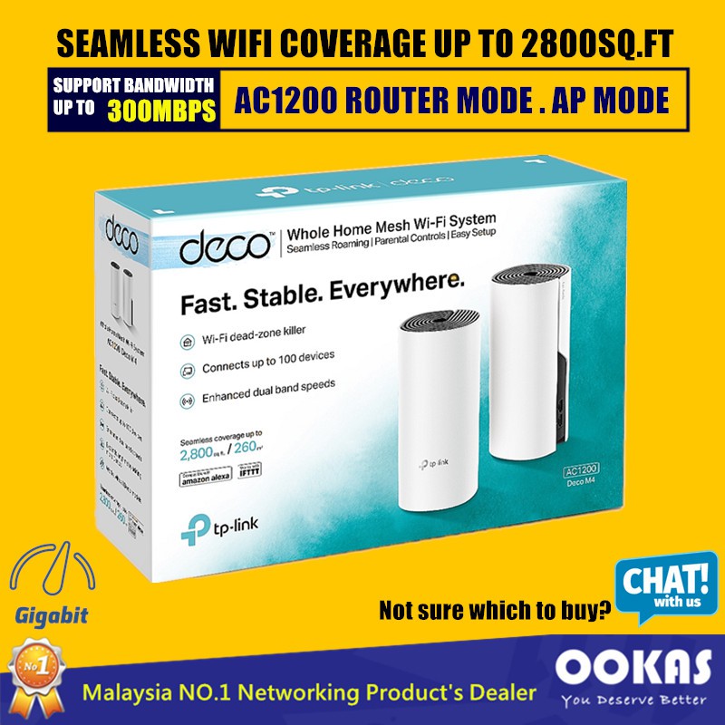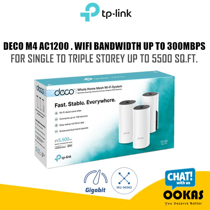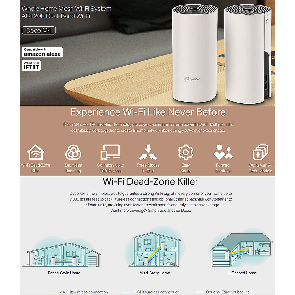 TP-LINK Deco M4 AC1200 Gigabit Wireless Mesh WiFi Router System 2.4GHz & 5GHz Dual Band Extender/Repeater