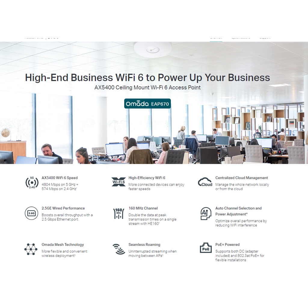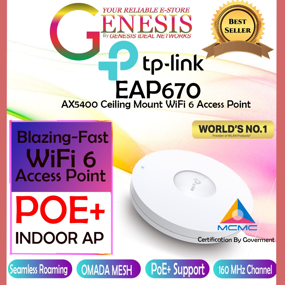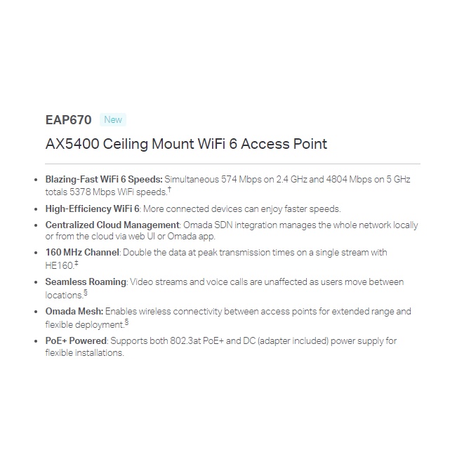 TP-LINK EAP670 AX5400 High-Efficiency WiFi 6 Ceiling Mount POE Access Point (FOR OFFICE/LARGE HOME/RESTAURANT/SMB)