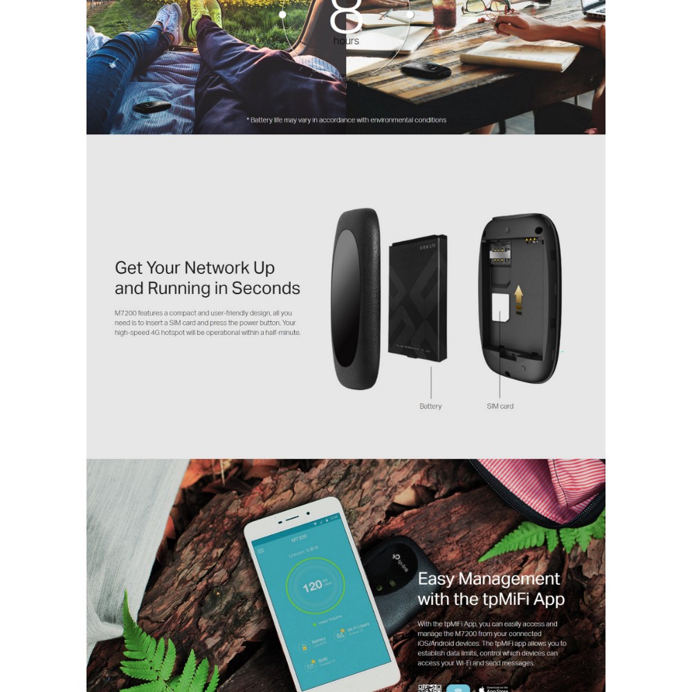 TP-LINK M7200 4G LTE N150 MOBILE WI-FI MODEM ROUTER WITH SIM CARD SLOT AND BUILT IN 2000MAH RECHARGEABLE BATTERY ZAIh