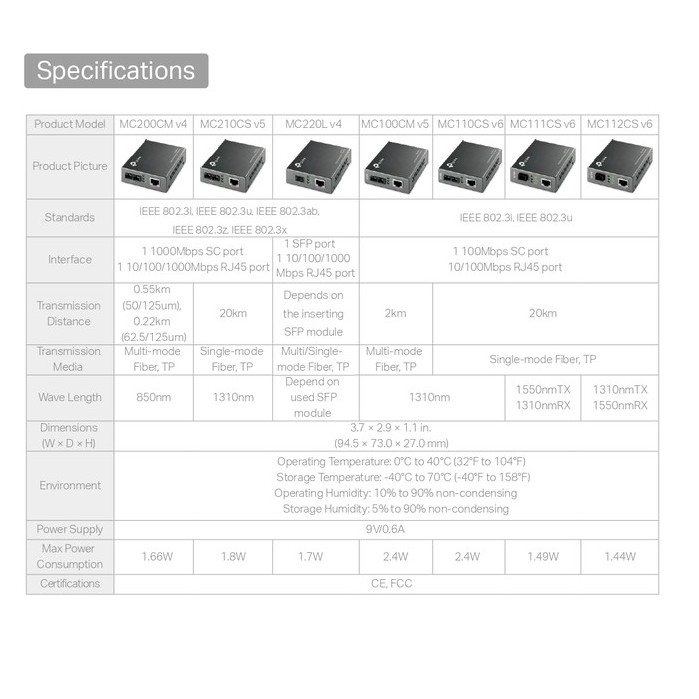 TP-LINK MC220L GIGABIT SFP MEDIA CONVERTER