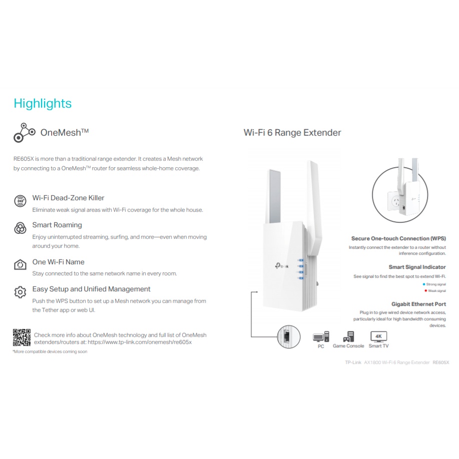 TP-LINK RE650X AX1800 ONE MESH AX WI-FI 6 RANGE EXTENDER/REPEATER/ACCESS POINT