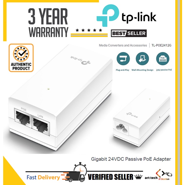 TP-LINK TL-POE2412G GIGABIT 24VDC PASSIVE POE ADAPTER 0.5A INJECTOR