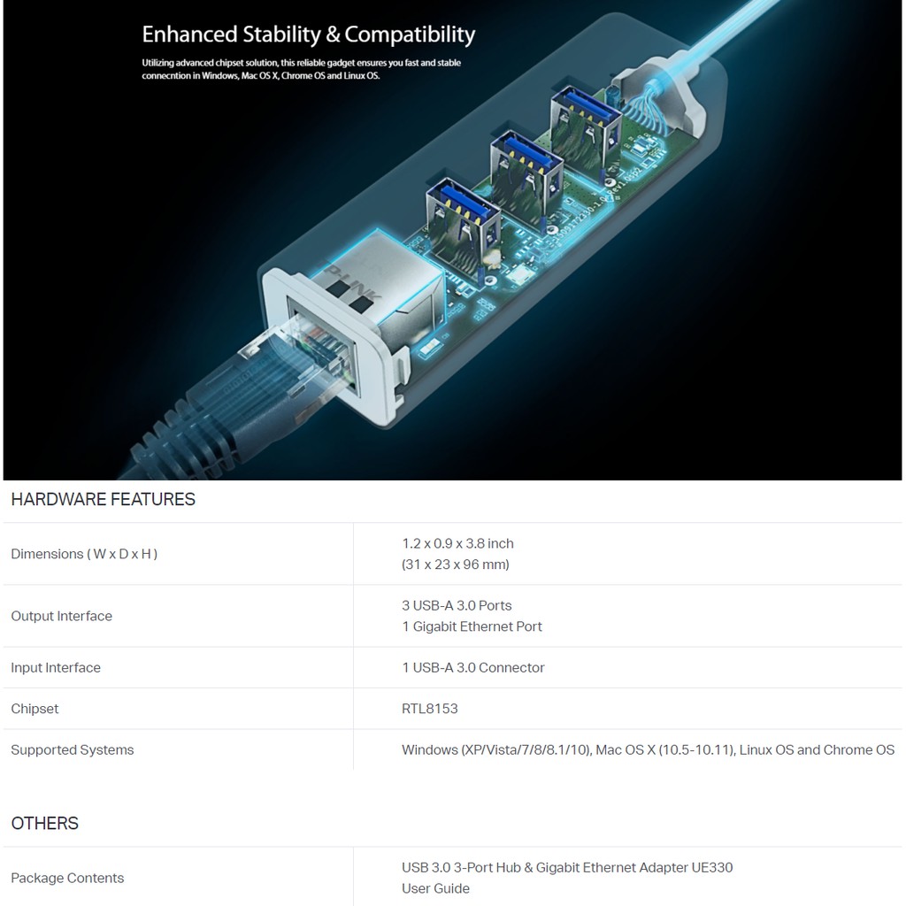 TP-LINK UE330 Gigabit Ethernet LAN Converter USB 3.0 Hub Adapter