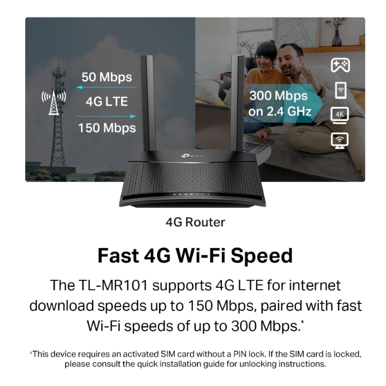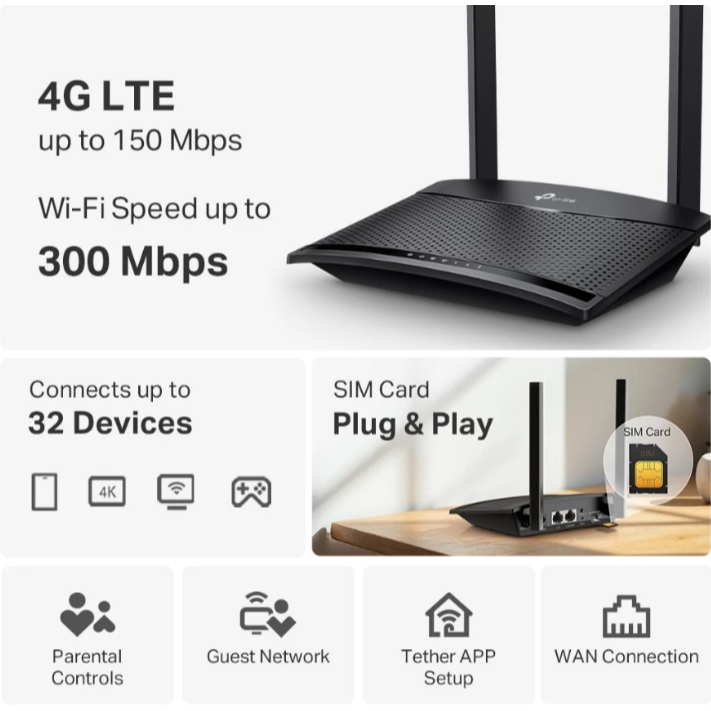 [READY STOCK] TP-Link 4G Router 300 Mbps TL-MR101 Support Hotspot Unlimited Data Plug‑and‑Play