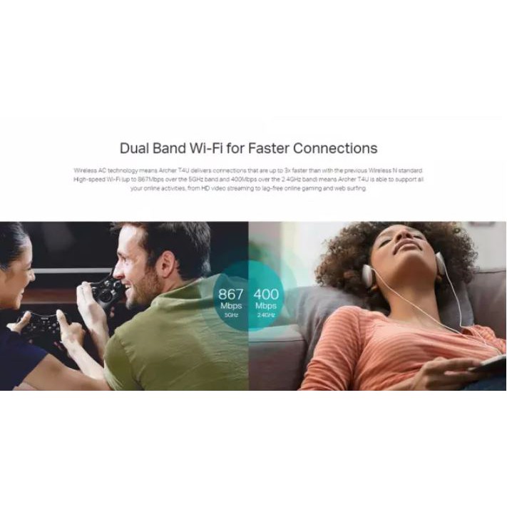 TP-Link AC1300 Mu-Mimo Wireless USB 3.0 Wifi Adapter Archer T4U 2.4Ghz+5Ghz For PC Desktop Laptop