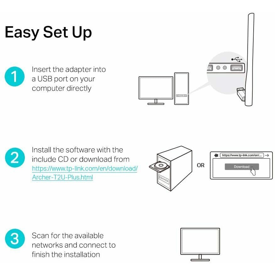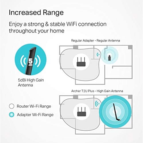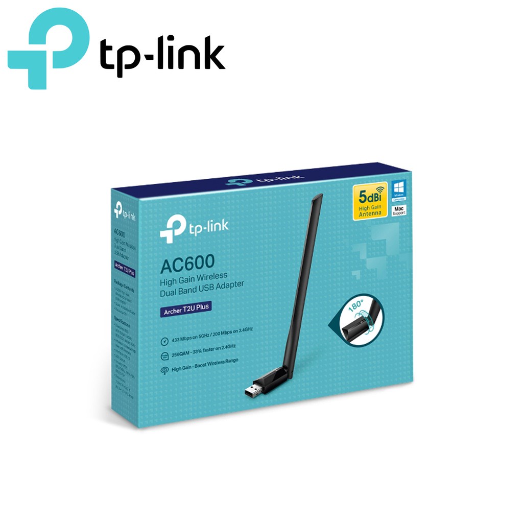 TP-Link AC600 Archer T2U Plus (2.4GHz + 5GHz) High Gain 5dBi Antenna Dual Band Wireless Wifi USB Adapter