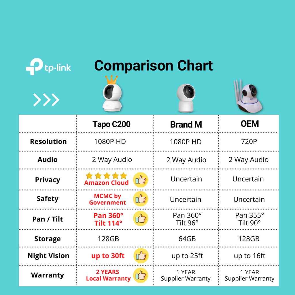 TP-Link CCTV Tapo C100 C200 TC60 TC70 TC71 1080P Full HD Pan Tilt 360 Wireless Wifi Home Security Surveillance IPCamera