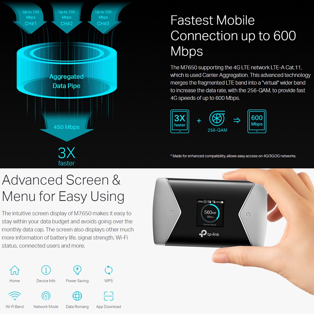 TP-Link M7650 600Mbps Wireless Dual Band 4G LTE Advanced Mobile WiFi DIGI MAXIS CELCOM U MOBILE YES