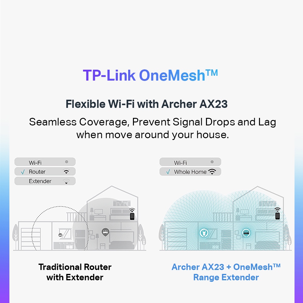 TP-Link Onemesh Archer AX23 - AX1800 Dual-Band Wireless AX WiFi 6 Router For UniFi/Maxis/Time Fiber (Mesh With RE605X)