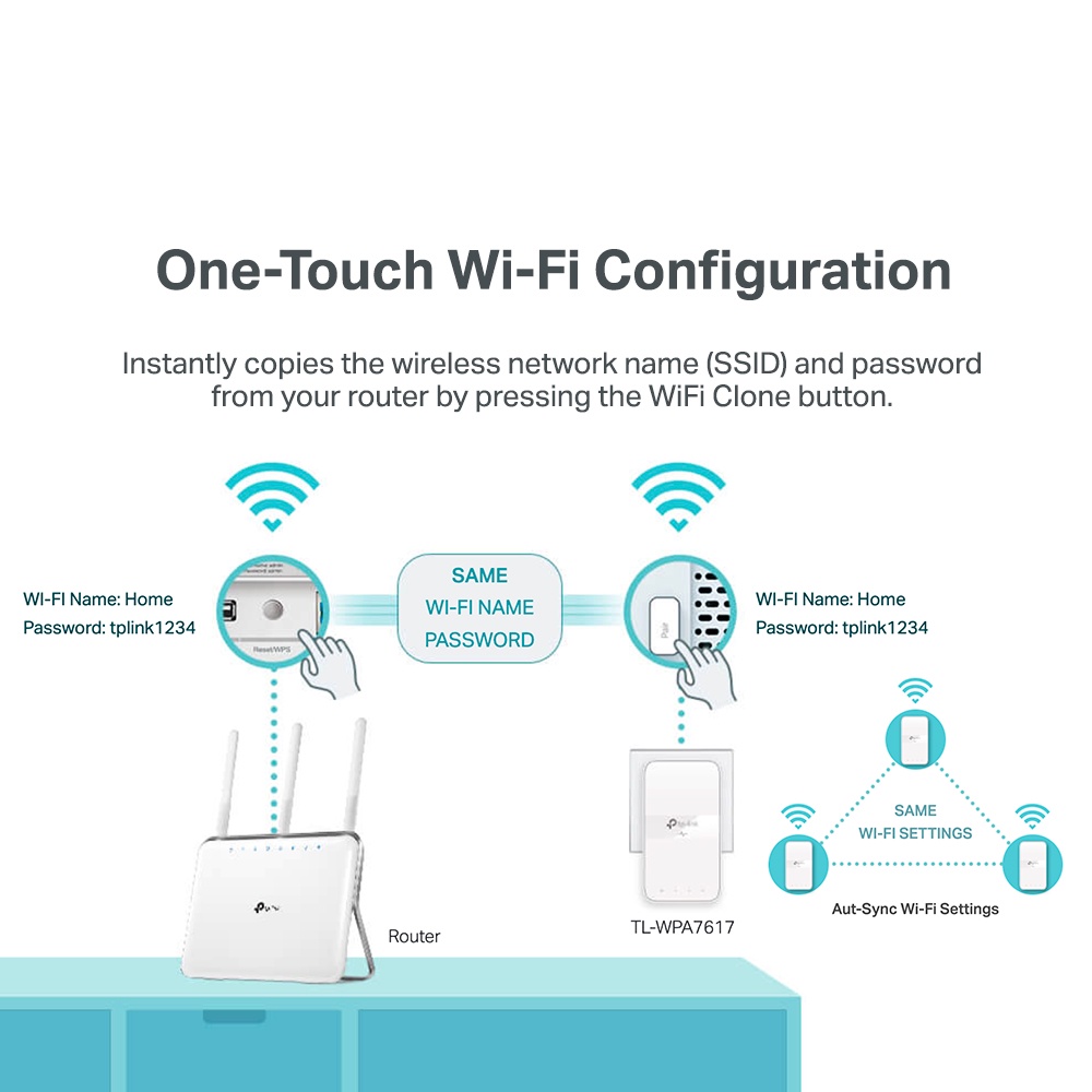 TP-LINK Onemesh AV1000 AC1200(2.4Ghz+5Ghz) Gigabit Dual Band Passthrough Powerline WIFI Wireless Adapter TL-WPA7617 KIT