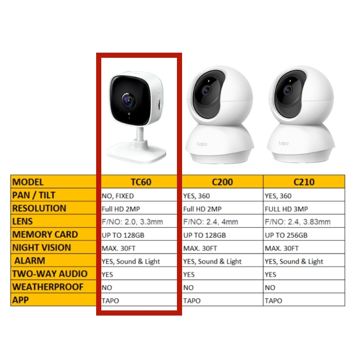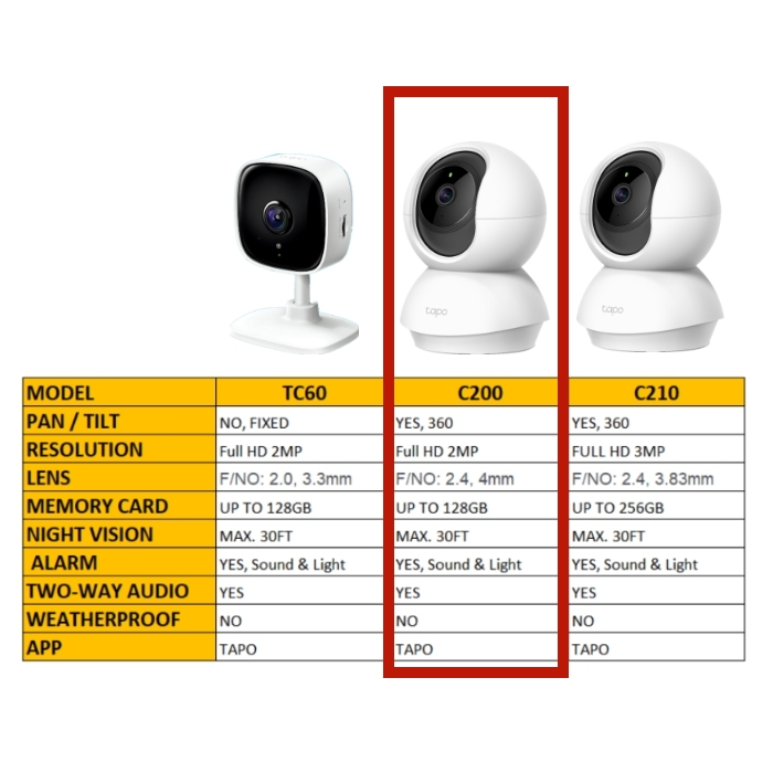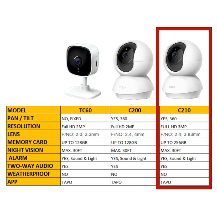 TP-Link Tapo C211/C210 3MP/C200/C200C/TC60 2MP 1080P Full HD Pan Tilt 360 Wireless Wifi Security Surveillance Camera