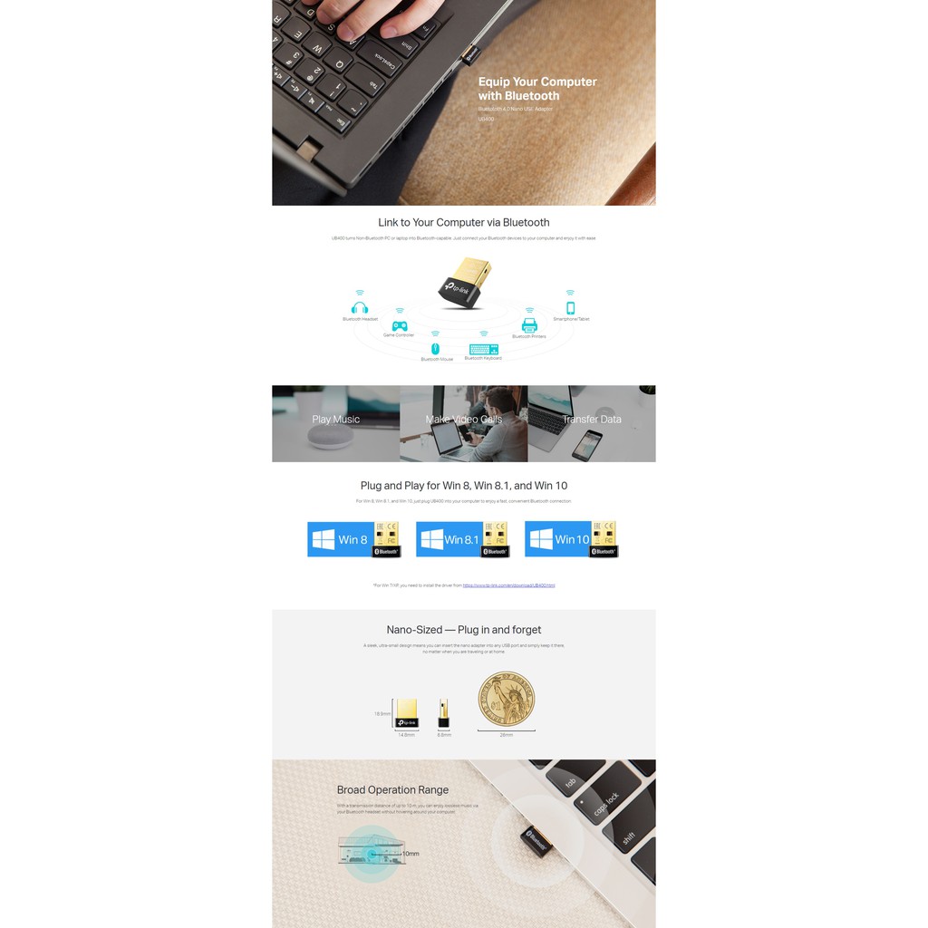 TP-Link UB400 / UB4A / UB500 Bluetooth 4.0 /5.0 Nano USB Adapter Dongle Driver Free for PC NoteBook Headset Play Music