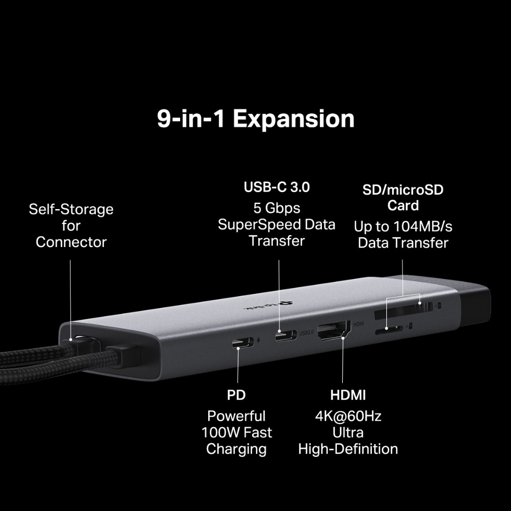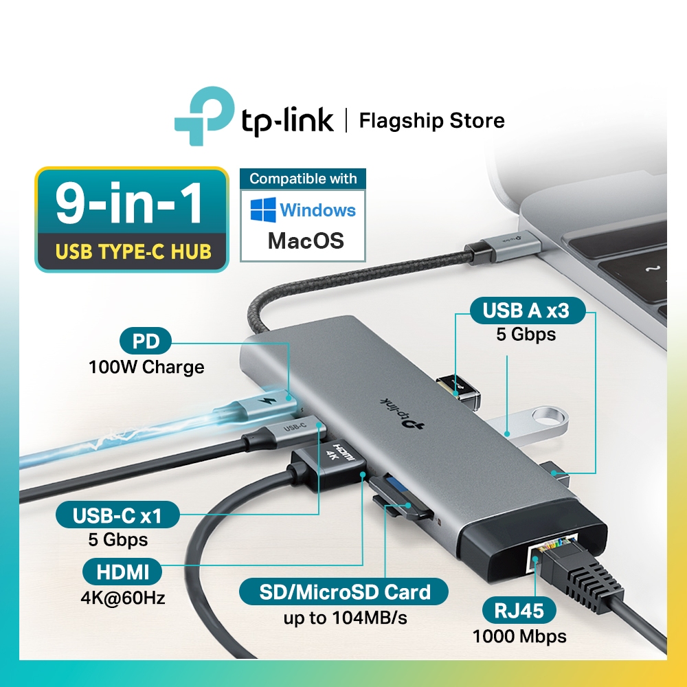 TP-Link UH9120C USB-C Hub 9-in-1 to HDMI 4K@60Hz Ethernet PD USB 3.0 Ports Adapter for Desktop Laptop Macbook iPad
