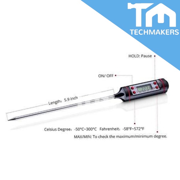 TP101 Extra Long Tip Digital Thermometer -50C to 300C Accuracy 0.1C **FREE BATTERY for Cooking Body Temperature Thermal