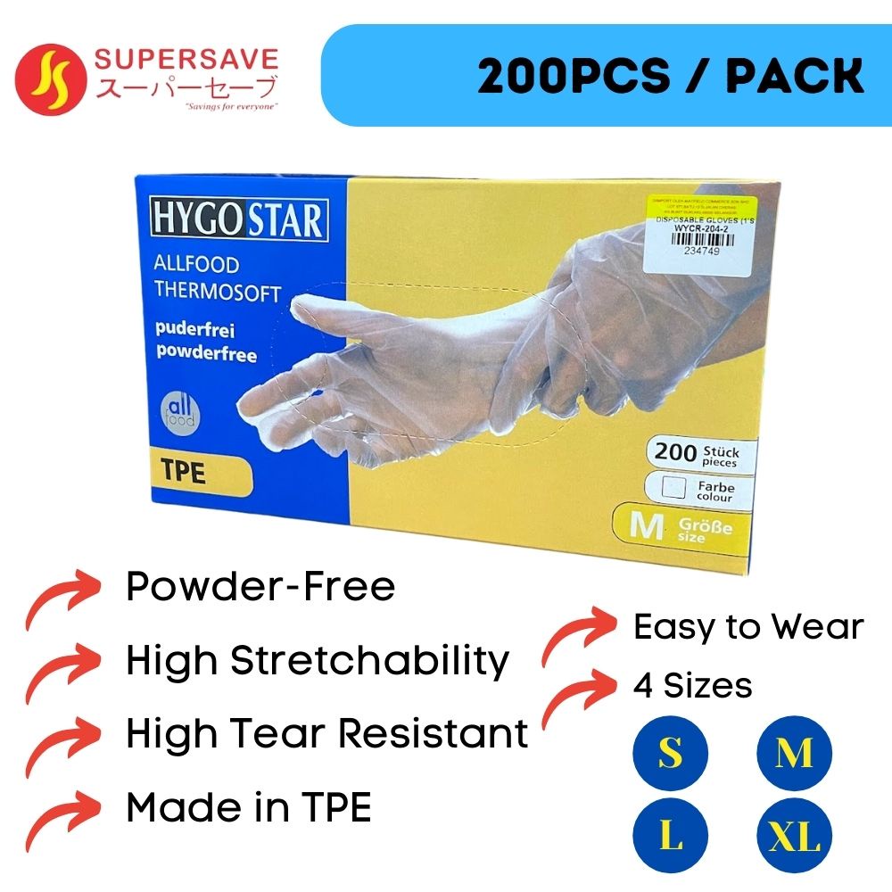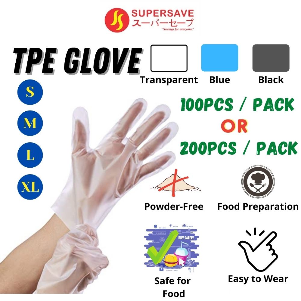 SUPERSAVE TPE Glove 100pcs / 200pcs Disposable Gloves Sarung Tangan Powder Free For Food Safe Kitchen Cleaning Washing