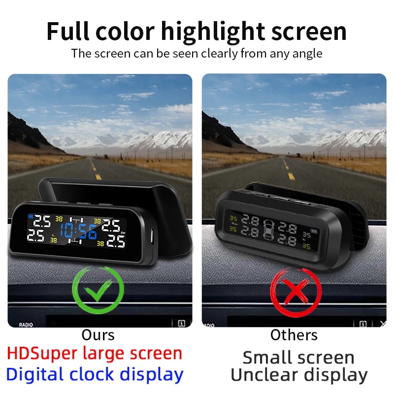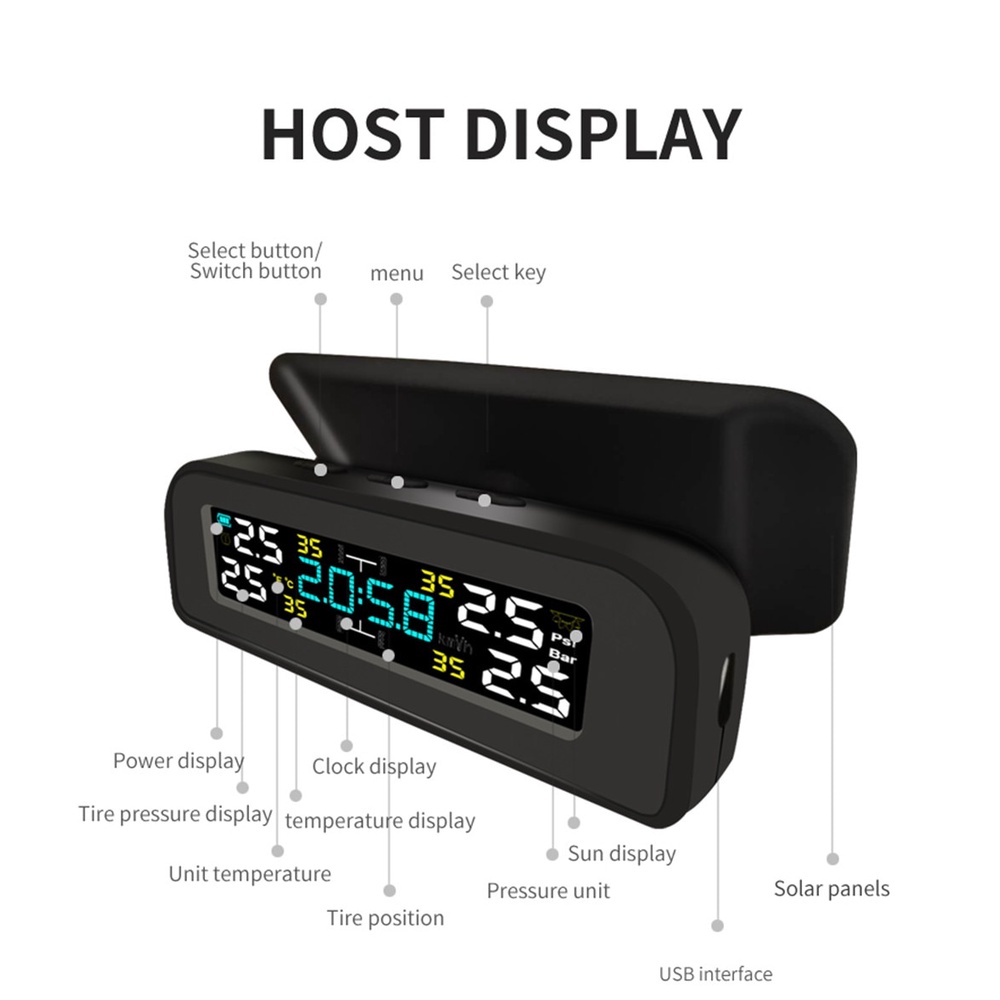 TPMS Car Tire Pressure Monitor System Automatic Clock Control Solar Power Adjustable LCD screen Display Wireless 4 tire