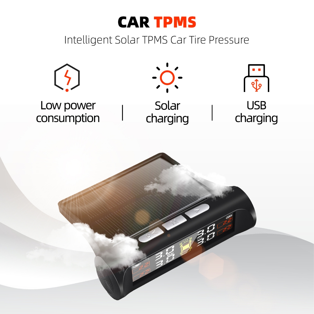 TPMS Wireless Tire Pressure Monitoring System Solar Car Tyre Pressure Alarm LCD Display Tempera-ture Warning With 4 External Sensors