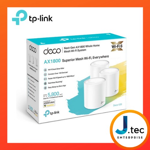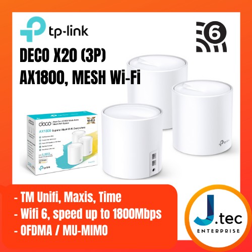 TPlink Deco X20 AX1800 WiFi 6 Mesh WiFi Router, Whole Home Wireless, 1800Mbps, AP/Router Mode, for TM Unifi Maxis Time