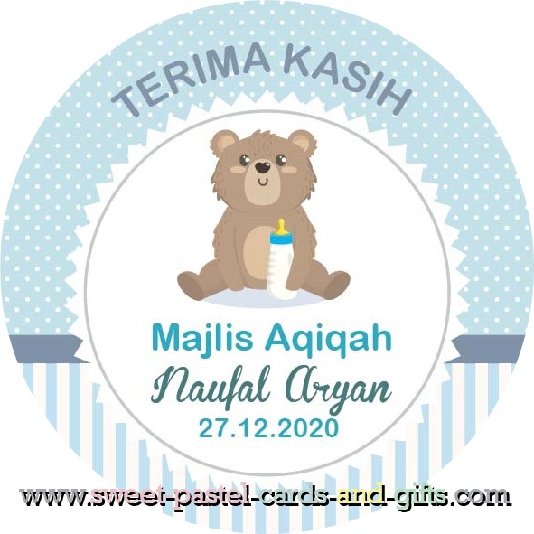 TQ STICKER DOOR GIFT BABY BOY MAJLIS AQIQAH / AKIKAH / CUKUR JAMBUL (DESIGN08) Size:4/5/6/7/8cm