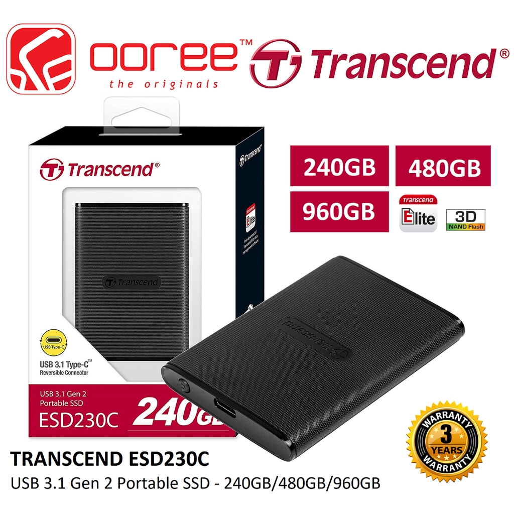 TRANSCEND ESD270C USB 3.1 GEN 2 PORTABLE EXT SSD 3D NAND EXTERNAL SOLID STATE DRIVE WITH USB-C PORT 250GB 500GB 1TB 2TB