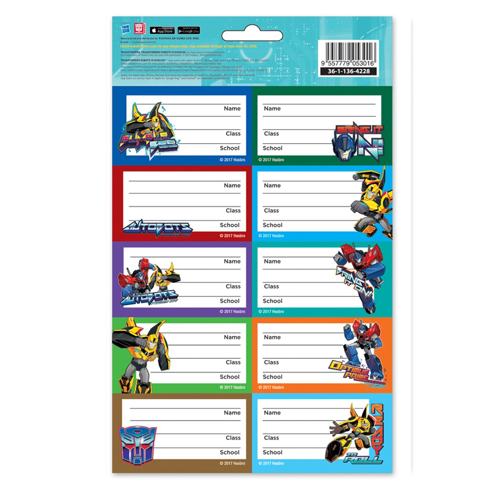 Transformers Trid School Book Sticker Name Label