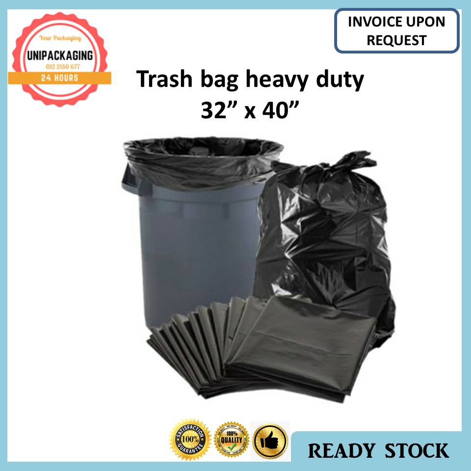 TRASH BAG 32"x40" Black garbage bag 10pcs per Packet Heavy Duty Grade Beg Sampah Green Environment by Recycle Material