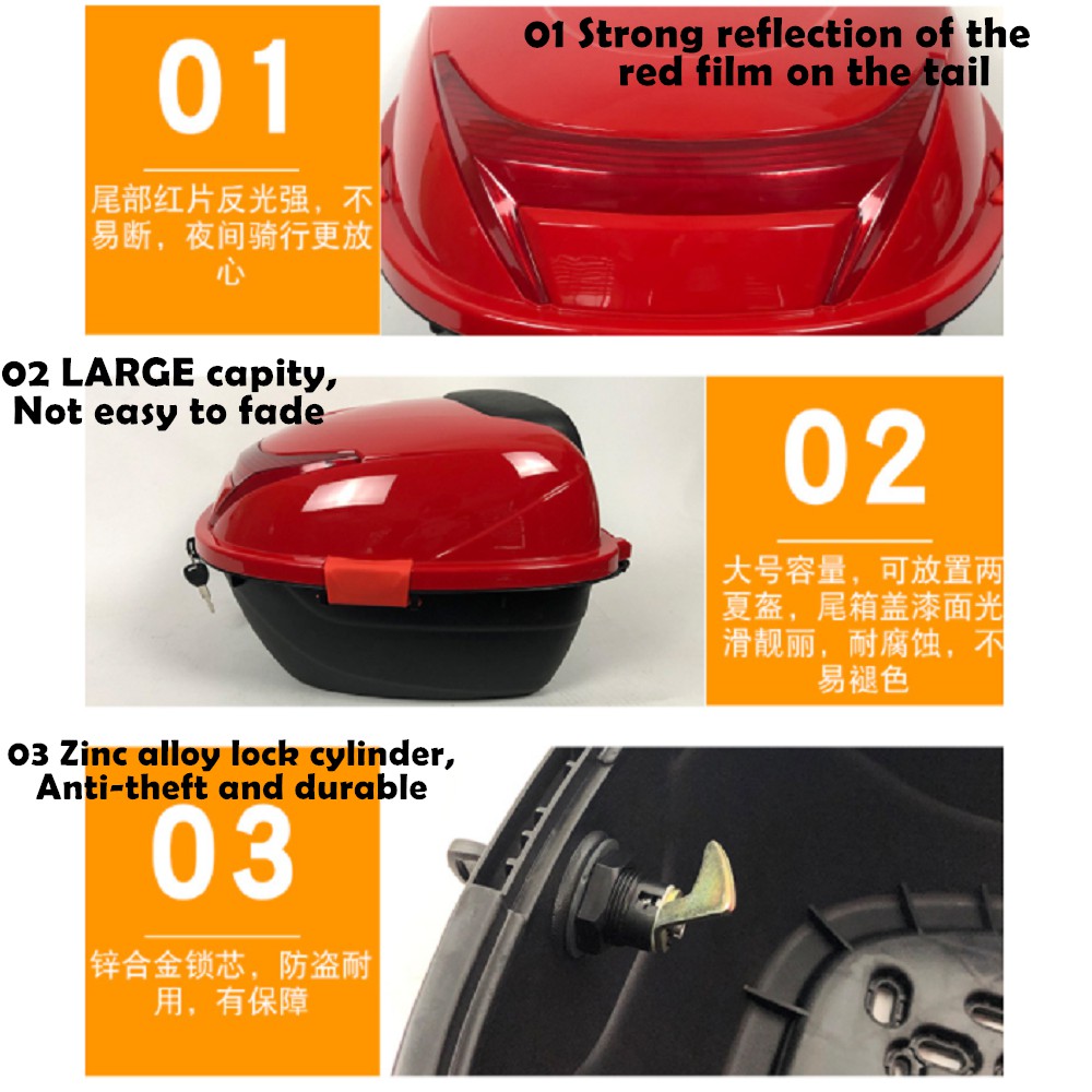 TRENY 30L Motorcycle Tail Box Universal Thickened Large Motorcycle Trunk/Bakul Simpanan Motosikal