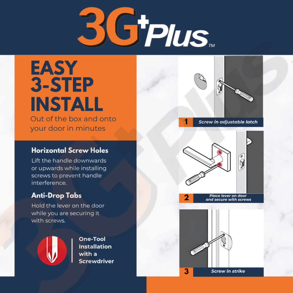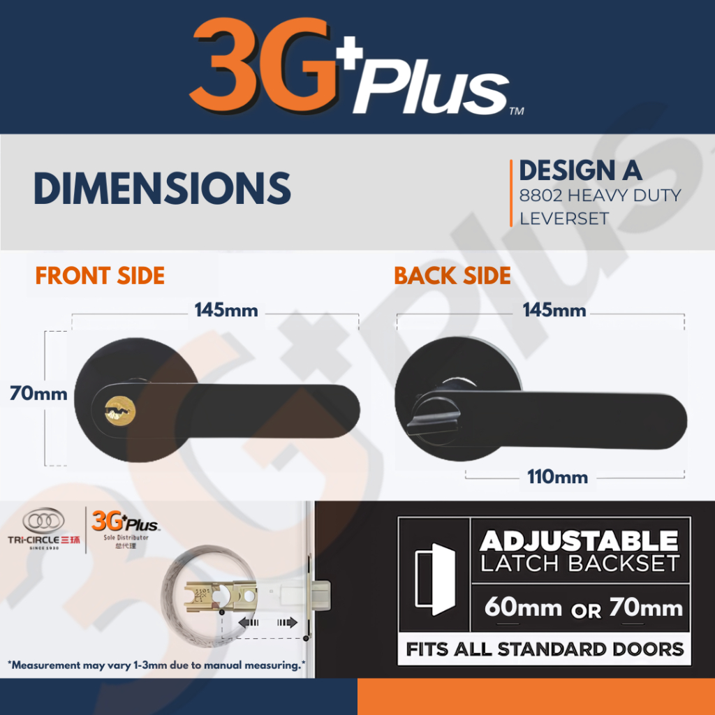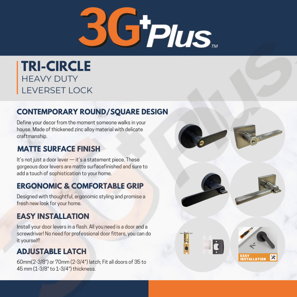 TRI-CIRCLE Matte Black / Silver Heavy Duty Cylindrical Leverset Lock Tubular Lever Lock Tombol Pintu