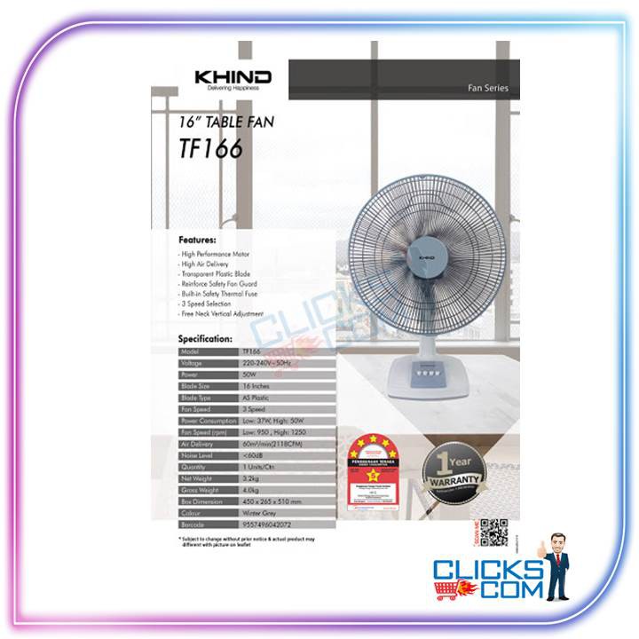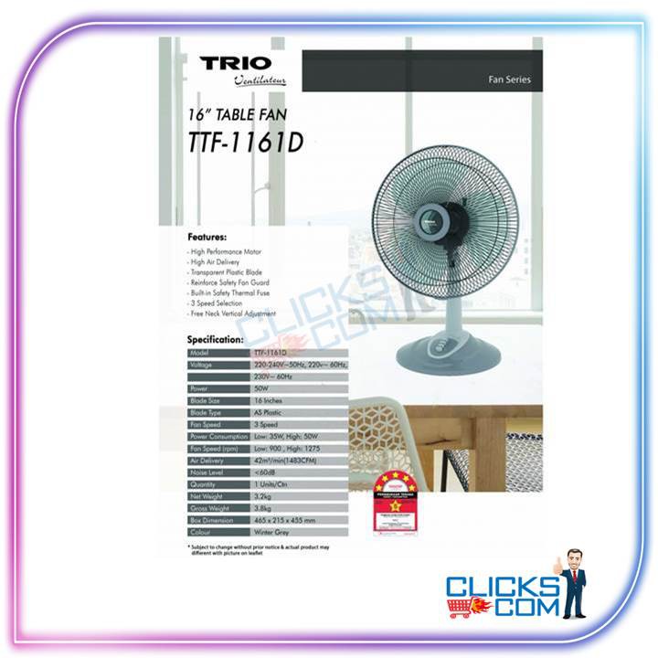 TRIO TABLE FAN TTF-1161D (16"),KHIND TABLE FAN TF 166 (16"),ISONIC TABLE FAN CTF-TF16A (16")