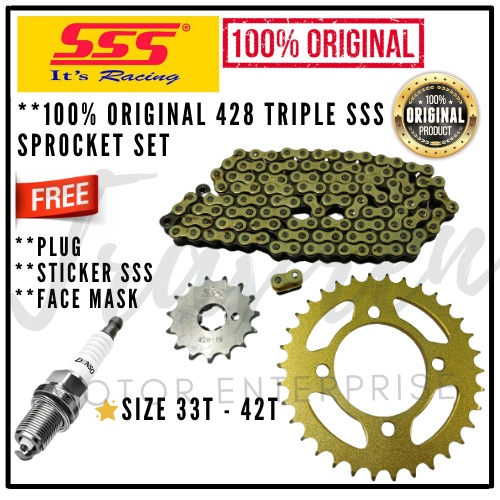 TRIPLE SSS LC135 LC-135 SPROCKET FULL SET 428 GOLD SPROCKET GOLD CHAIN RANTAI 100% ORIGINAL TRIPLE SSS FREE PLUG