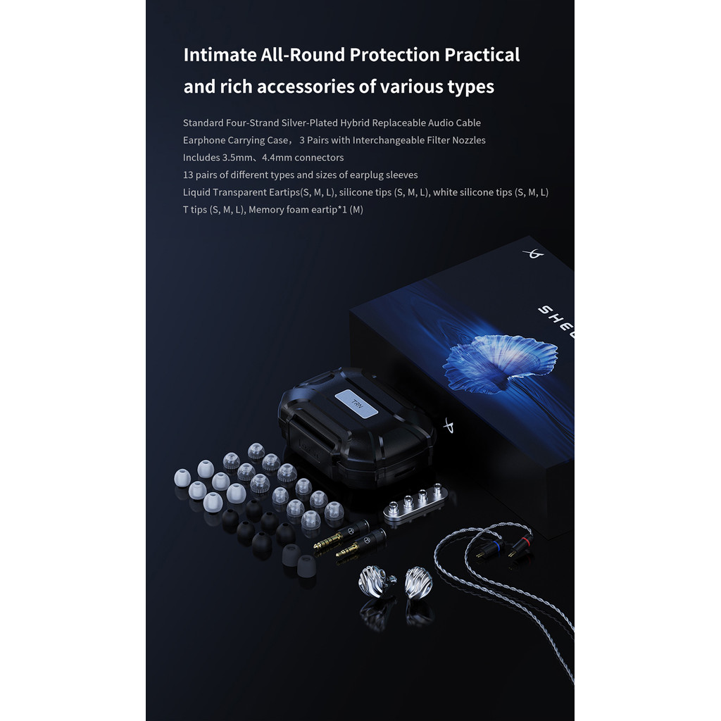 TRN SHELL Four-Unit Dynamic Driver Planar Hybrid IEM Earphones with Premium Silver-Plated Hybrid Cable
