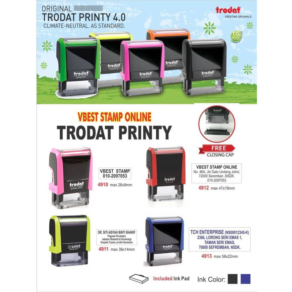 TRODAT Printy Selfink Stamp Cop Nama Guru Jururawat Company Nurse Paid Cikgu Murah (with Ink)
