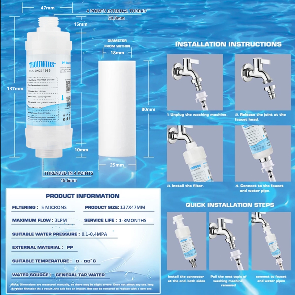 TROUWIDS Washing Machine Water Filter Cartridge Water Heater Sediment Water Purifier Filter Penapis Air Mesin Basuh