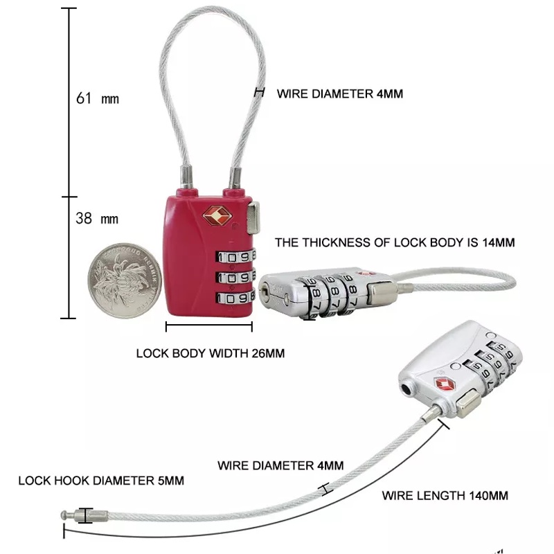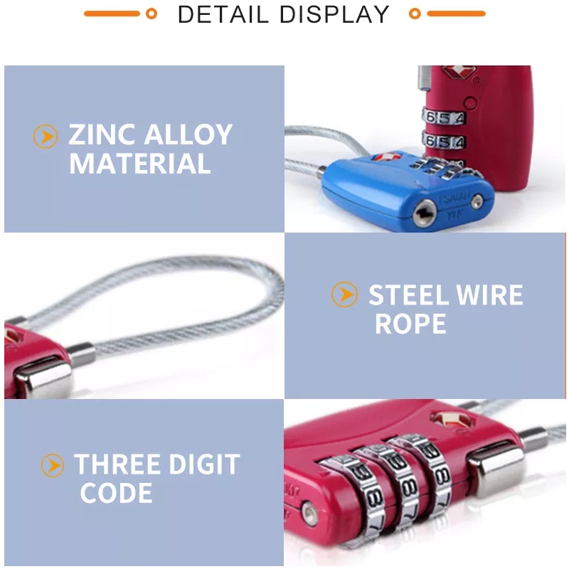 TSA Approved Security Customs 3 Digit Combination Password Code Luggage Padlock Travel Bag Suitcase Cable Lock
