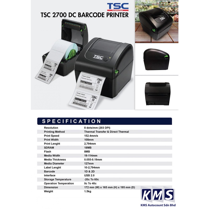 TSC DIRECT THERMAL LABEL PRINTER DC2700