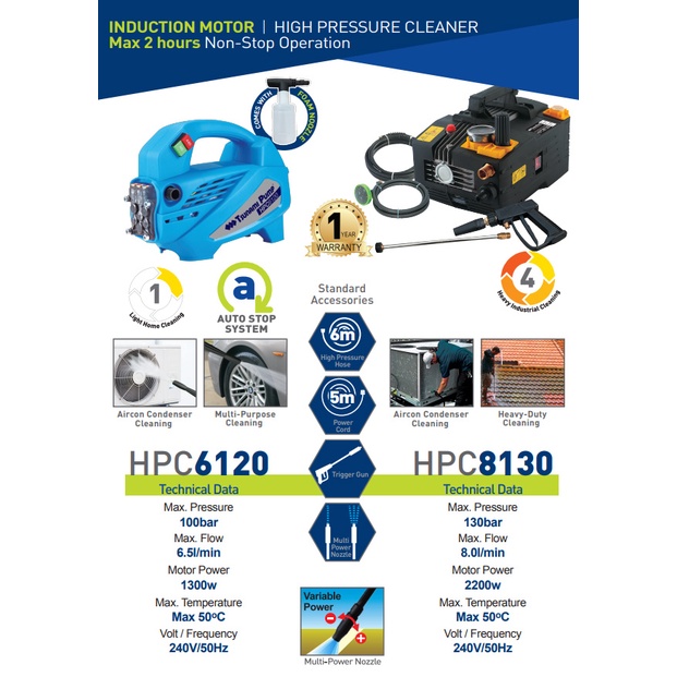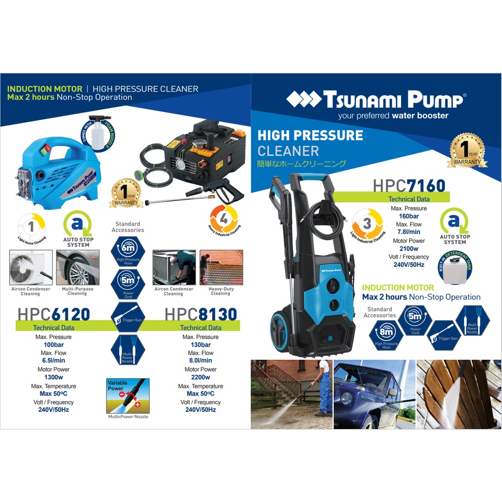 TSUNAMI HPC8130 130Bar 2200W Induction Motor High Pressure Cleaner Pump Water Jet Pump Cuci Kereta Cuci Lantai 8L/min