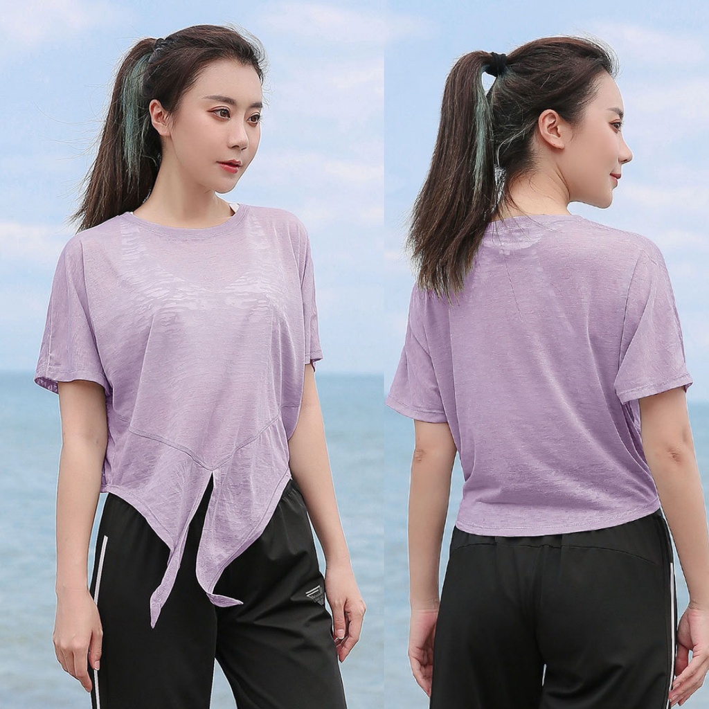 TShirt Sukan Wanita Plus Size Lady Women Korea Plus Tee Shirt Cool Ice Sexy Back Top Sport Run Dance Gym Zumba