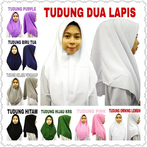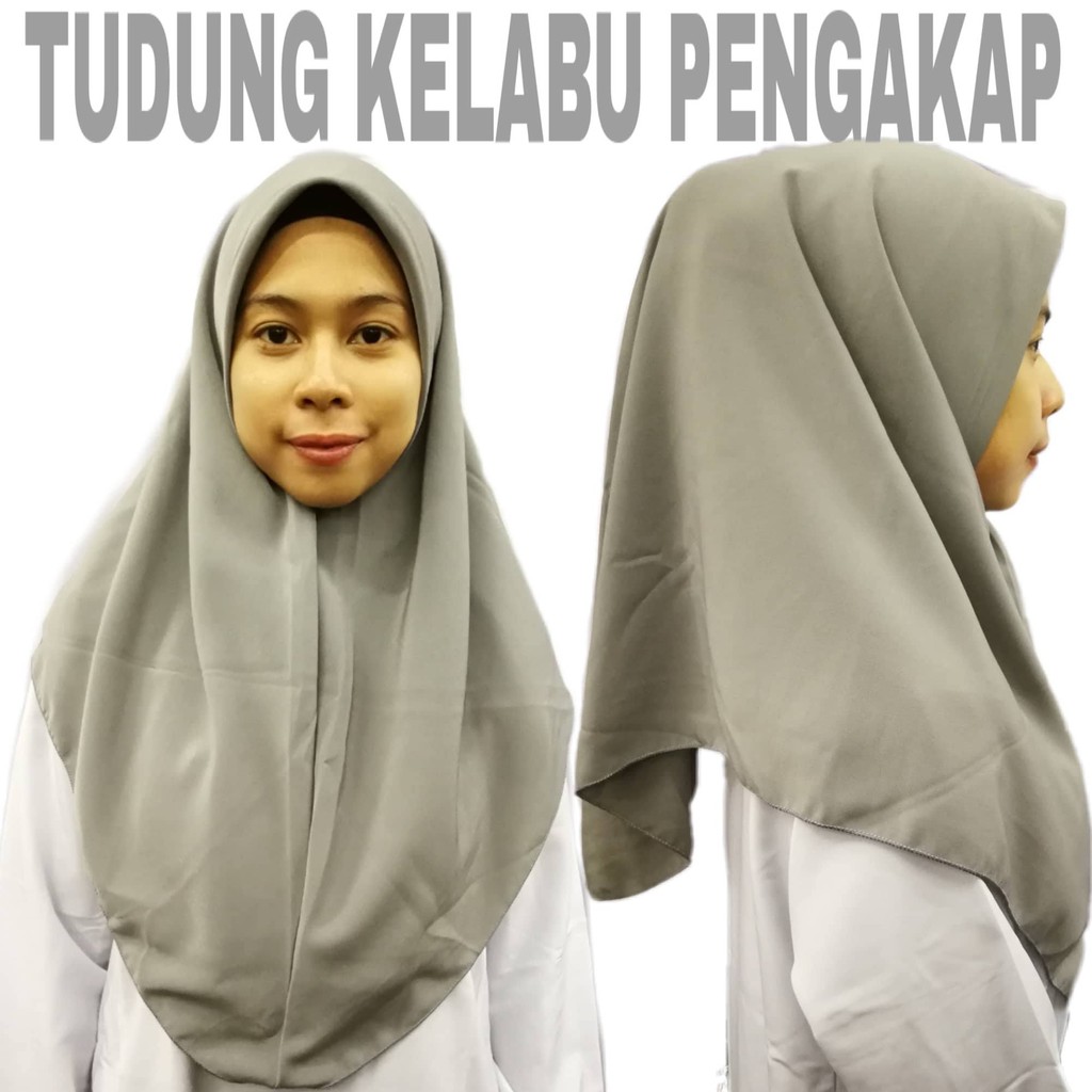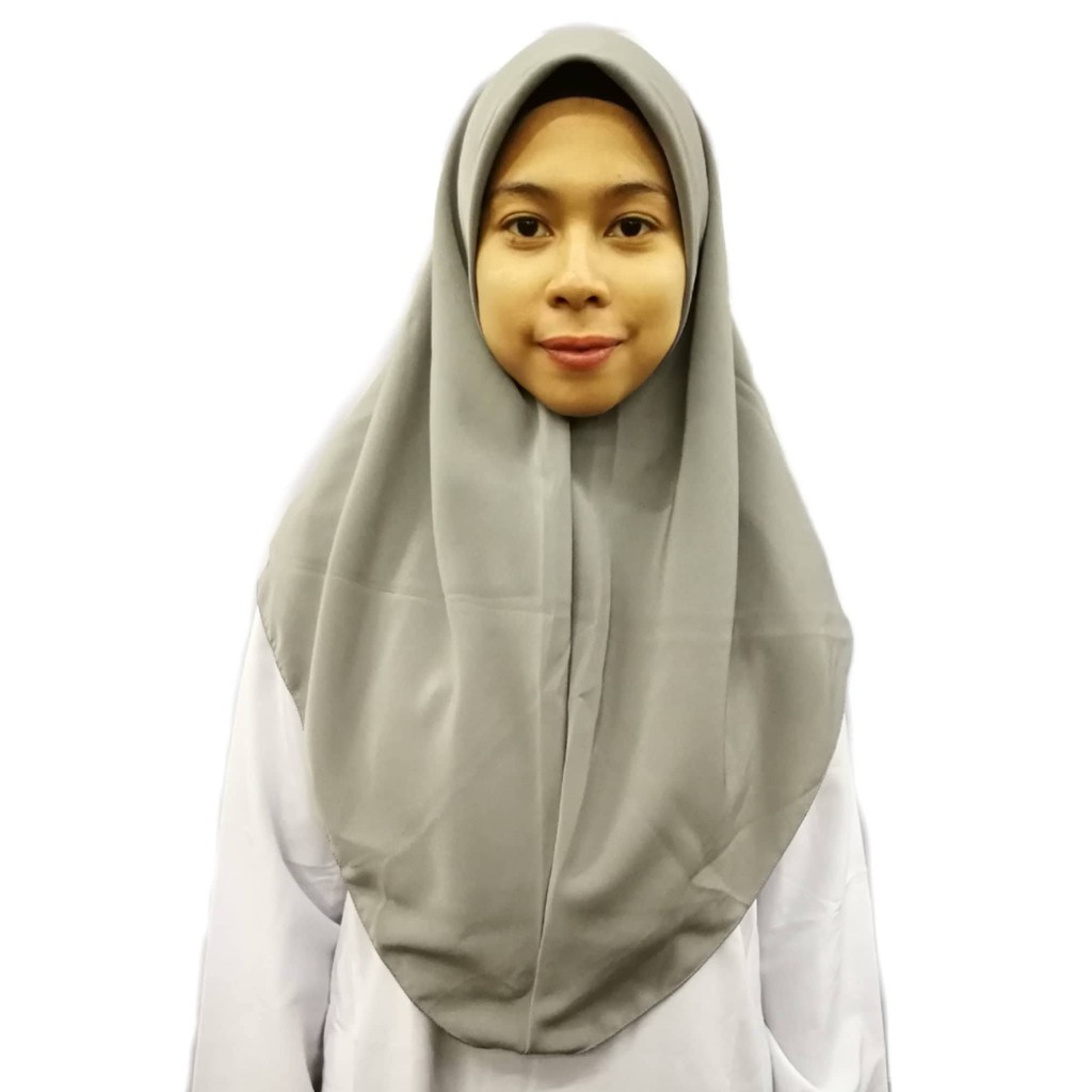 TUDUNG SEKOLAH KELABU TUDUNG PENGAKAP DUA LAPIS KAIN LICIN KOSHIBO TUDUNG GREY