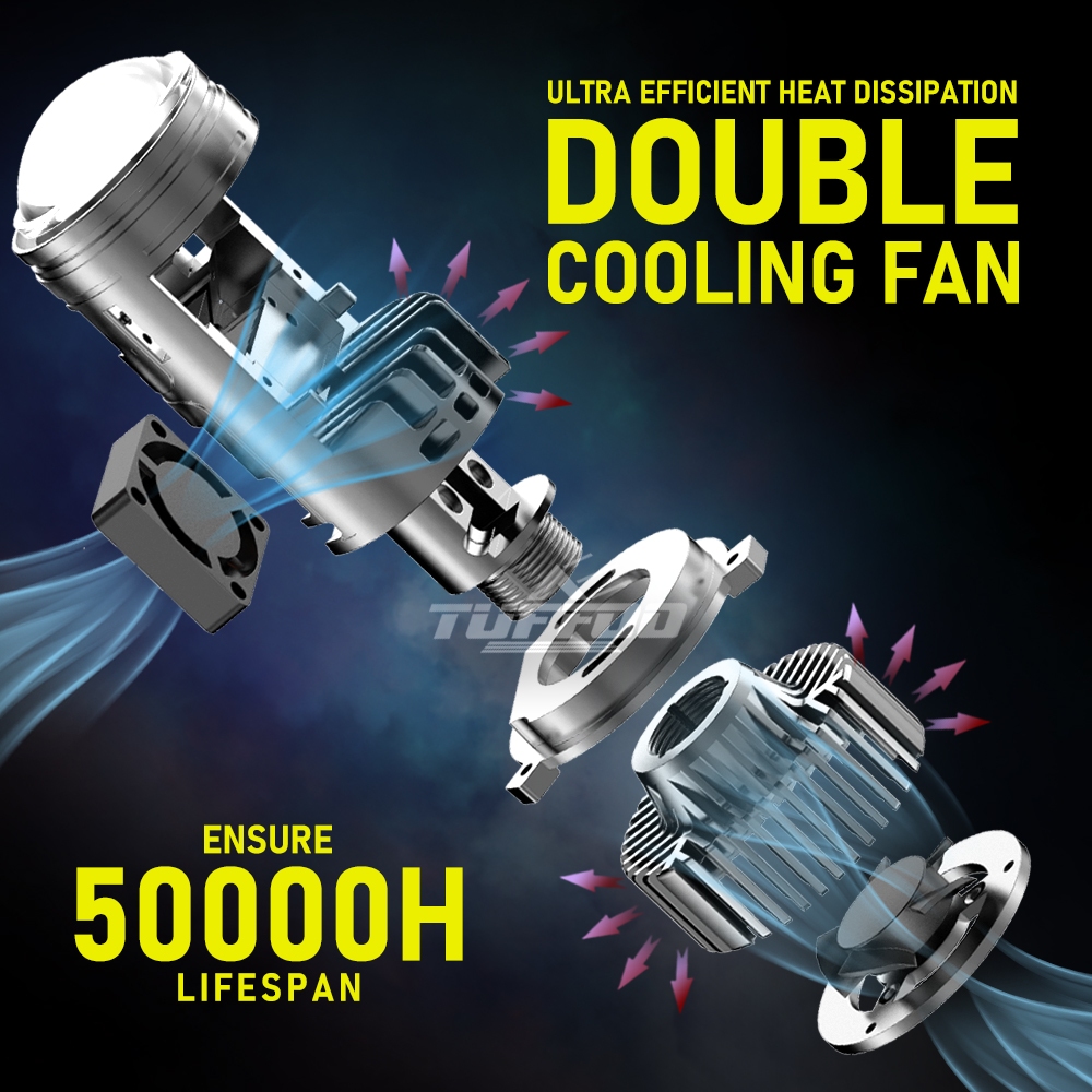 TUFFOO 2 Pcs P60 Mini H4 Bi LED Projector Headlight For Car 130W 30000LM - 6000K White / 4300K Warm White DC12V
