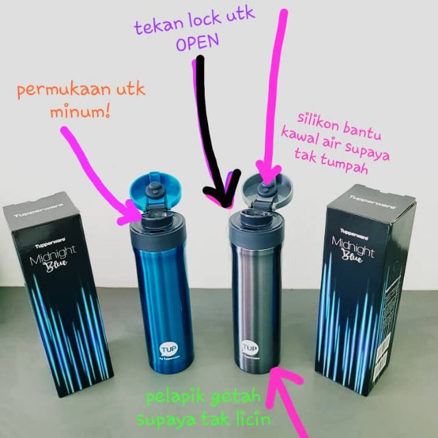 TUPPERWARE DUO TUP THERMAL FLASK 500ml or STAINLESS STEEL ECO BOTTLE 880ML + Pouch (1 set)