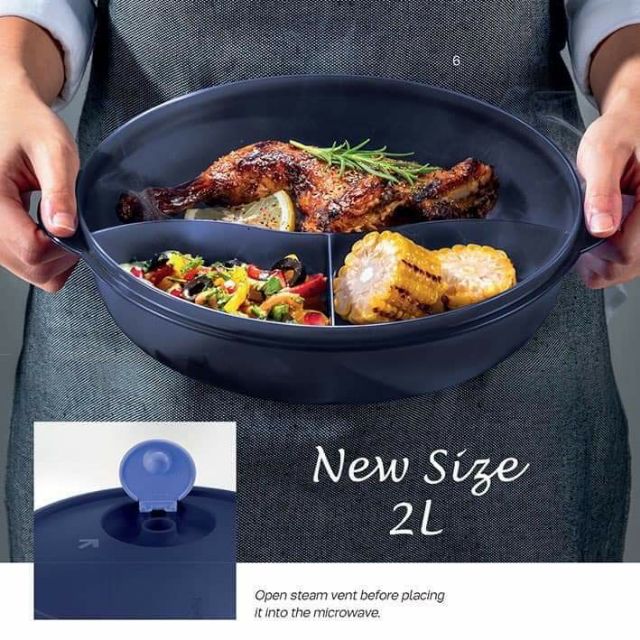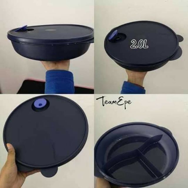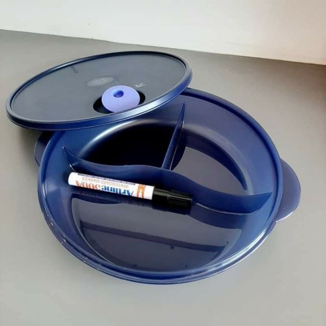 TUPPERWARE LARGE CRYSTAL WAVE DIVIDED DISH With Spoon (2L) Bento
