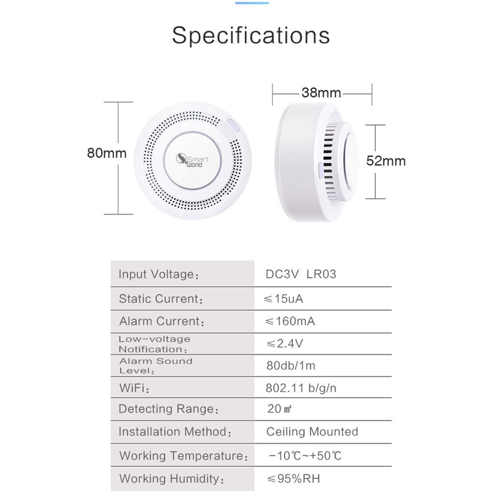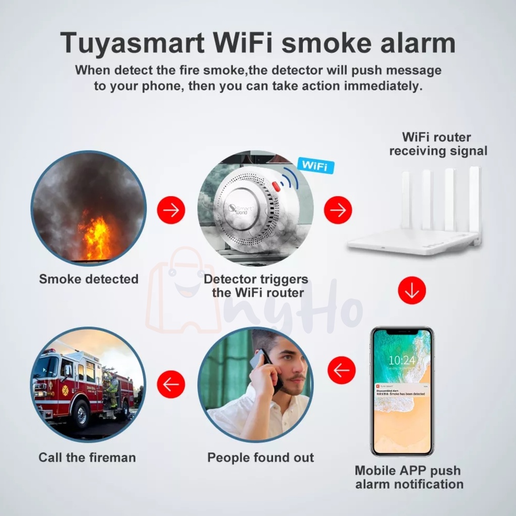 TUYA SMART WORLD WIFI Smoke Alarm Detector Smoke Fire Sensor Alat Pengesan Asap Api 智能烟雾感应器