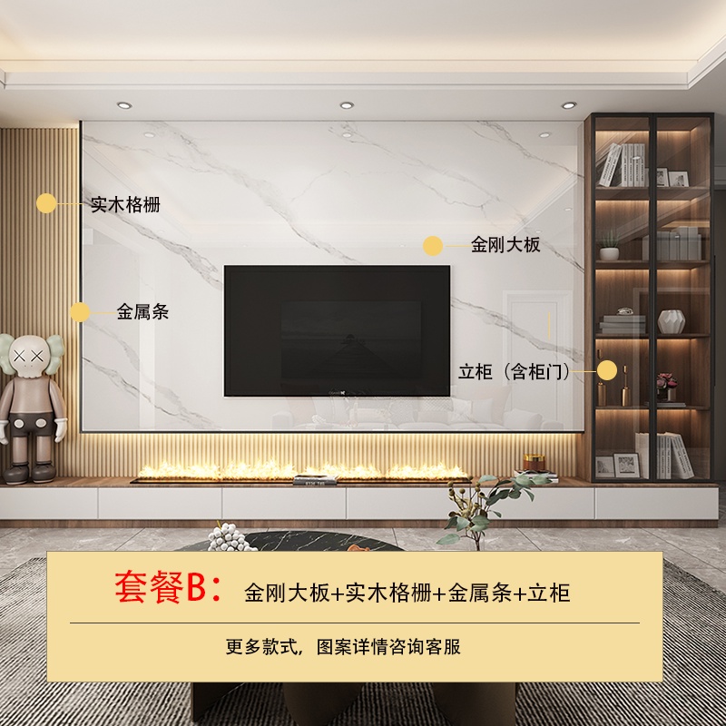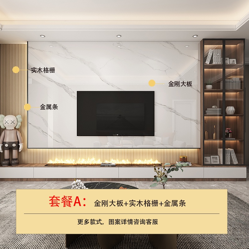 TV backdropTV Background Wall Tile Hanging Video Wall Grille Decorative Marble Deck Stone Plate Large Board Light Luxury