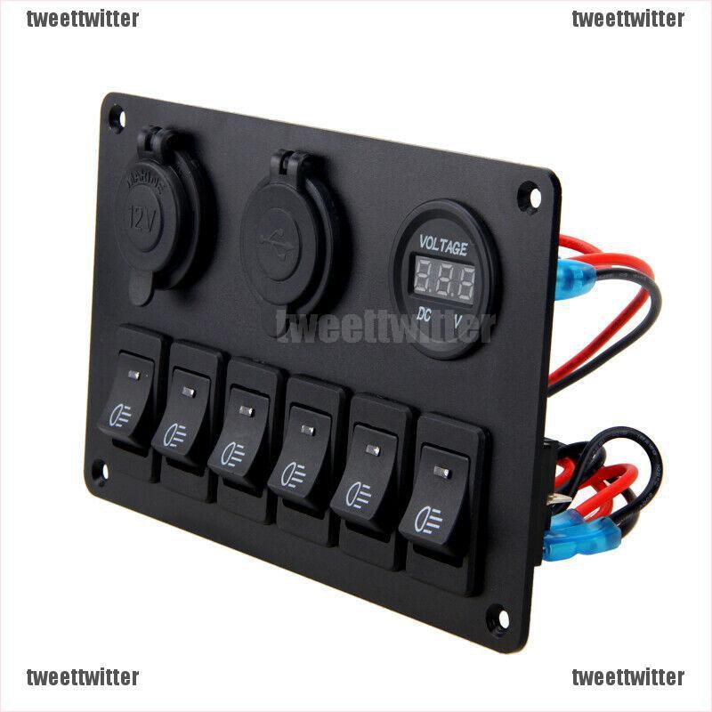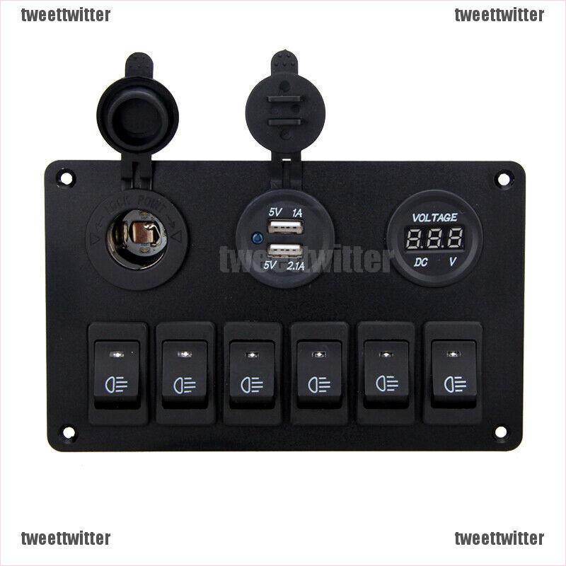 TWE6-Gang Switch Control Panel LED Rocker Breaker Car Marine Boat Truck Circuit