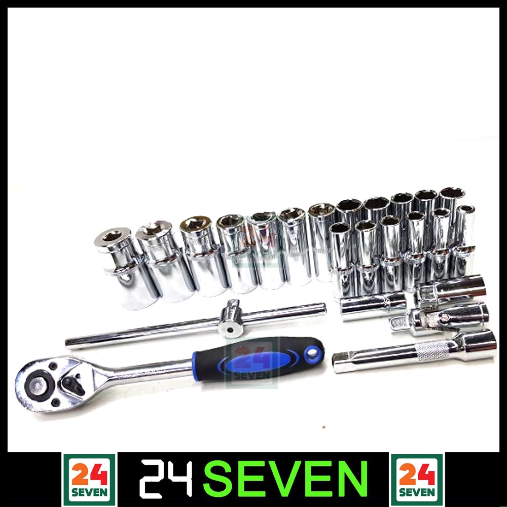 TWENTYFOURSEVEN - 24pcs 1/2" Dr Deep Socket Wrench Long Socket Ratchet Box Socket Set - 6 point Socket Wrench