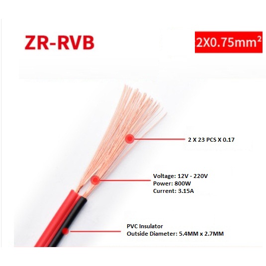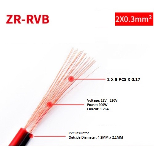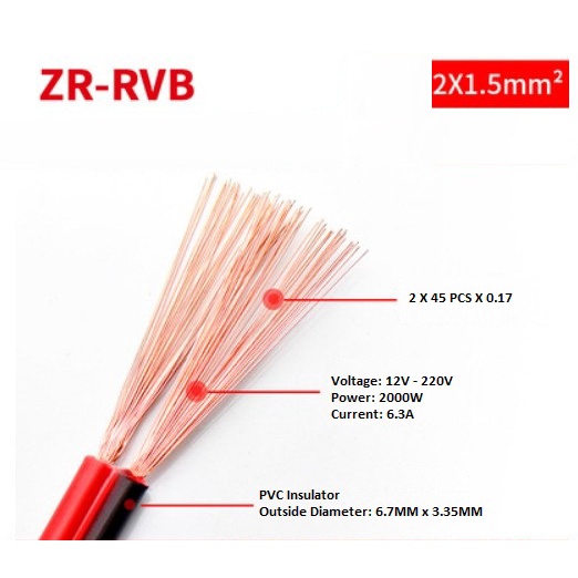 TWIN CABLE AWG22 AWG20 AWG18 AWG16 AWG14 AWG12 RED BLACK WIRE ZR-RVB ELETRIC ELECTRICAL WIRE AC DC POWER 300/500V PVC