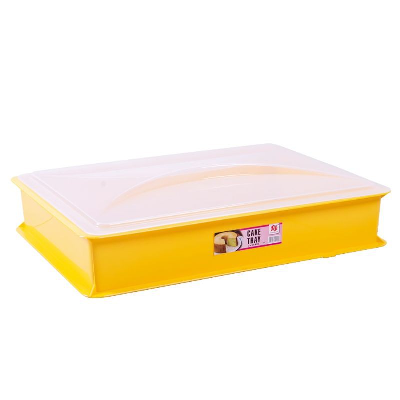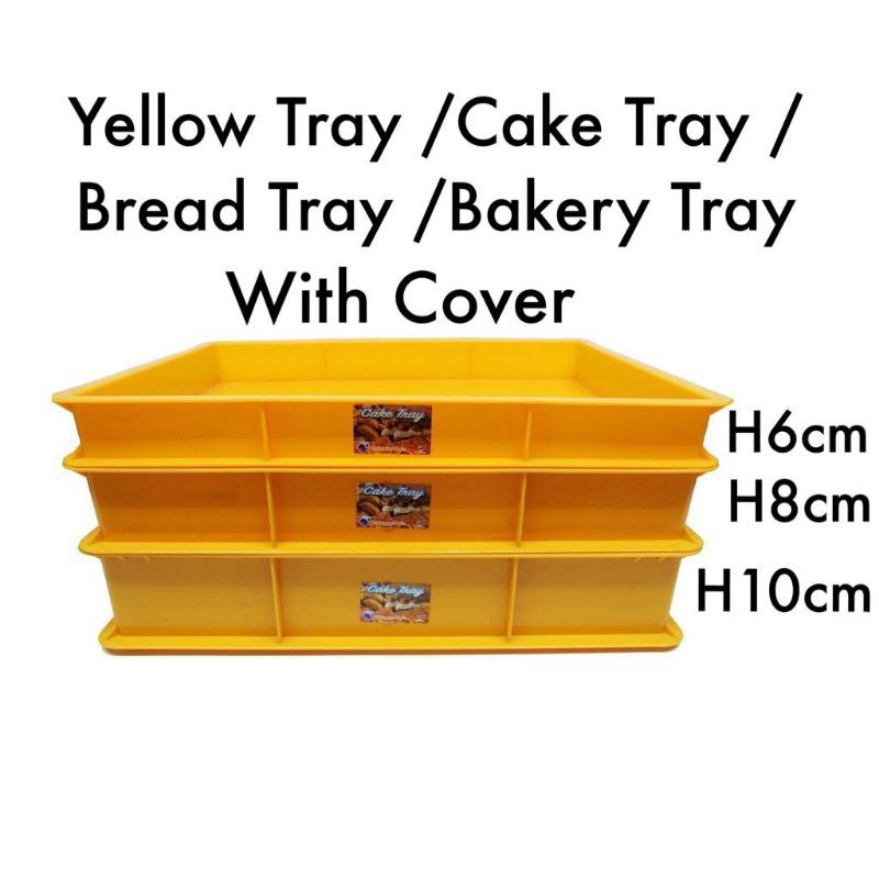TWINS DOLPHIN Yellow Plastic Cake Tray With Cover /Bakery Tray /Bread Tray /Food Tray /Tray Kuning Kek Roti Kuih /Dulang
